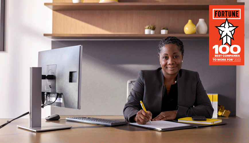 2022 Fortune’s 100 Best Companies to Work For, published April 2022, research by Great Place to Work, data as of August 2021. Compensation provided for using, not obtaining, the rating.